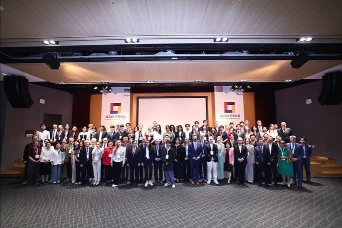 제23차 한독포럼 현장에서 군포시의회 박상현 의원이 포럼 개막식에 앞서 기념촬영을 하고 있다.