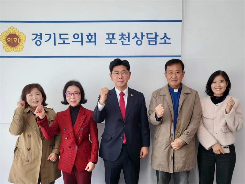윤충식 의원이 경기도의회 포천상담소에서 열린 ‘재가노인지원서비스 관련 현안 정담회’에서 기념사진 촬영을 하고 있다.