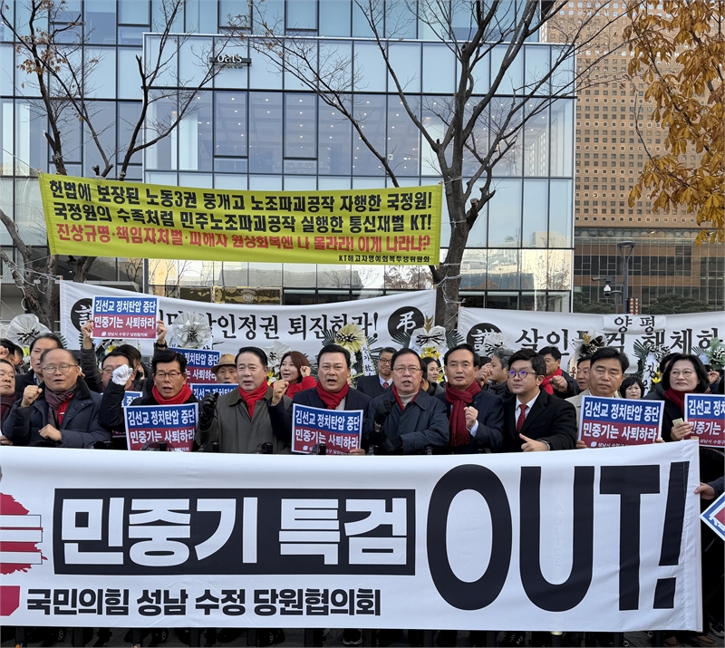 [프레스큐=공경진 기자] 국민의힘 경기도당이, 26일 서울 광화문 KT 특검 사무실 앞에서 민중기 특별검사팀의 강압수사 의혹을 규탄하며 특검 해체를 촉구하는 성명을 발표했다.이번 규탄은 양평군 공직자 고 정모 사무관이 특검 조사 이후 극단적 선택을 한 사건을 두고, 특검의 정치적 편향성과 인권침해 논란이 정점으로 치달은