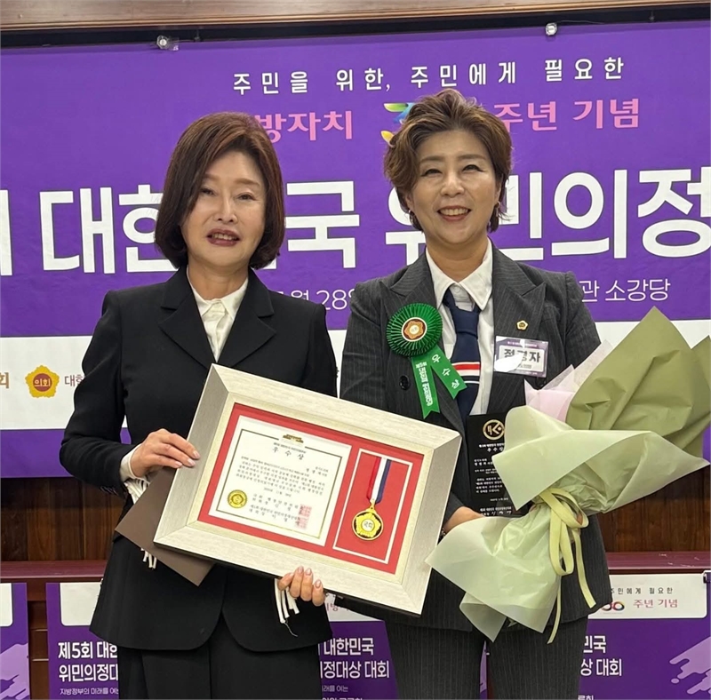 정경자 도의원, ‘제5회 대한민국 위민의정대상’ 우수상·국회 행정안전위원장상 동시 수상