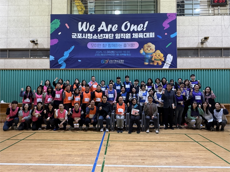 [프레스큐=공경진 기자] 군포시청소년재단(대표이사 김덕희)은, 30일 군포시청소년수련관 체육활동장에서 ‘제1회 주니어보드(Y:ON) 기획 임직원 가을 체육대회’를 열고 세대 간 소통과 조직문화 혁신을 위한 첫발을 내디뎠다.이번 체육대회는 “모이면 힘! 함께하는 즐거움!”을 주제로 청년 직원들로 구성된 주니어보드(Y:ON)