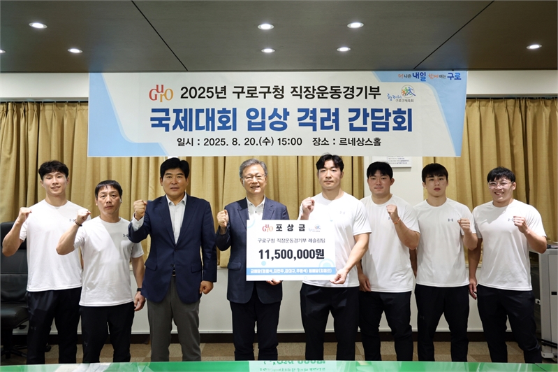 [프레스큐=공경진 기자] 구로구(구청장 장인홍)는, 20일 구청 르네상스홀에서 ‘국제대회 입상 격려 간담회’를 열고, 구로구청 직장운동경기부 선수단의 성과를 기렸다. 이번 간담회는 세계 무대에서 우수한 성적을 거둔 선수들의 노고를 격려하고, 향후 지속적인 발전 방향을 논의하기 위해 마련됐다.