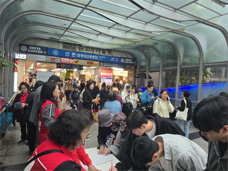 [프레스큐=공경진 기자] 국민의힘 군포시 당원협의회(위원장 최진학)는 13일 오후 군포시 산본역 육교 위에서 ‘사법파괴·법원장악 반대 대국민 서명운동’을 전개하며 시민들의 자발적 동참을 이끌었다.이번 서명운동은 사법부 독립 훼손과 법원 장악 시도에 대한 국민적 경각심을 높이고, 헌법 가치 수호를 위한 국민 의지를 모으기