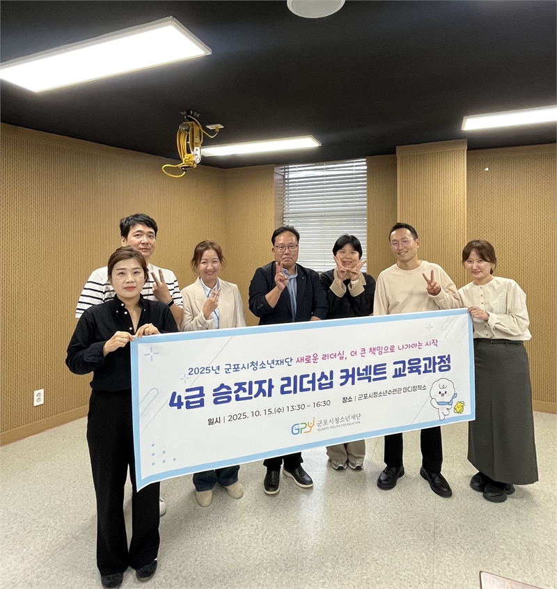 [프레스큐=공경진 기자] 군포시청소년재단(대표이사 김덕희)은 지난 15일, 재단 내 승진자를 대상으로 한 ‘경력개발형(CDP) 리더십 교육)’을 성공적으로 마쳤다고 밝혔다.이번 교육은 관리자급으로 새롭게 역할을 맡게 된 직원들의 리더십 역량을 강화하고, 조직의 지속 가능한 성장 기반을 마련하기 위해 추진됐다. 교육 과정은