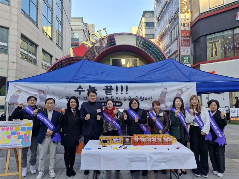 [프레스큐=공경진 기자] 군포시 학교운영위원장 협의회(회장 김공주)가, 14일 산본로데오거리에서 대학수학능력시험을 마친 고3 수험생들을 위해 따뜻한 격려 행사를 진행했다.전날 치러진 2025학년도 수능을 마무리한 학생들을 지역 학부모들이 직접 응원하기 위해 한자리에 모이면서 산본 중심 거리는 밝은 분위기로 가득 찼다. 행