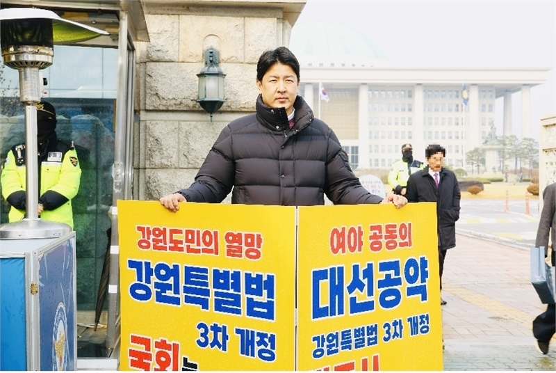 문관현 위원장, 국회 앞에서 홀로 외친 ‘강원의 미래’... 강원특별법 3차 개정안 촉구