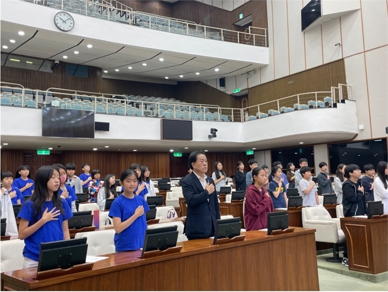 이날 의회아카데미에는 용산구 이촌1동 소재 신용산초 5학년 학생 20명과 중구 신당동 흥인초 6학년 학생 17명 등 총 37명이 참여했다. 학생들은 시의회 본회의장을 직접 찾아와 지방의회 운영 방식과 의정활동 과정을 몸소 체험하며 민주주의의 절차와 의미를 배우는 시간을 가졌다.