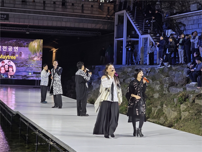 식전공연에는 아카펠라 그룹 ‘메이트리(MAYTREE)’가 무대에 올라 ‘Autumn Leaves’, ‘오징어게임 OST 메들리’ 등을 선보이며 깊어가는 가을밤을 감성적으로 물들였다. 이어 오간수교 하부에서는 미디어파사드 3점이 상영됐다.